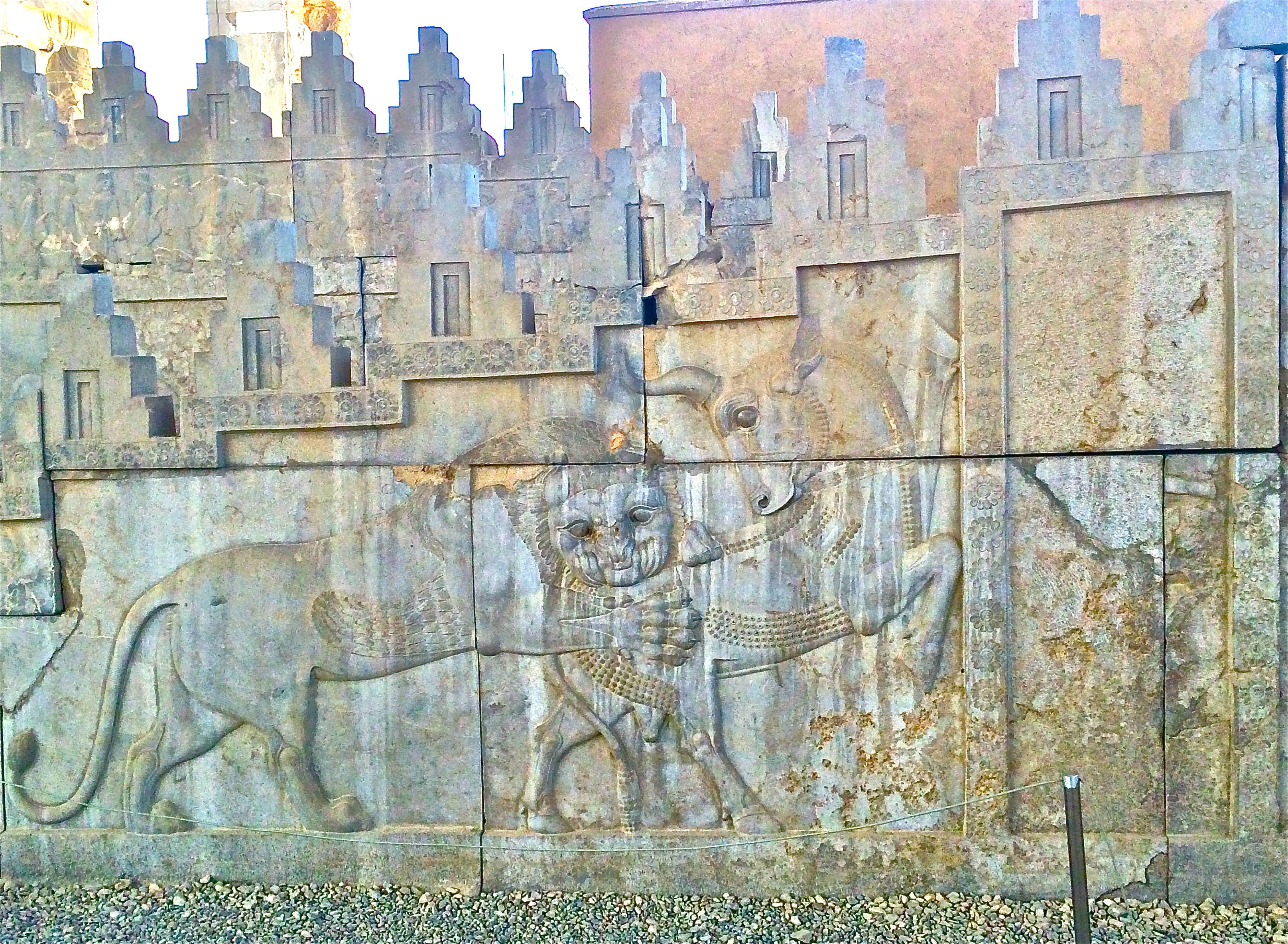 Once inside the citadel’s walls, monumental staircases, covered with reliefs of tribute bearers and animals, rose to the porticoes, where the king sat elevated on his portable throne.